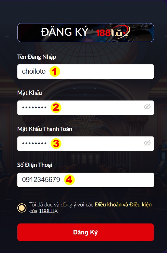 Mật khẩu này dùng để đăng nhập vào 188LUX